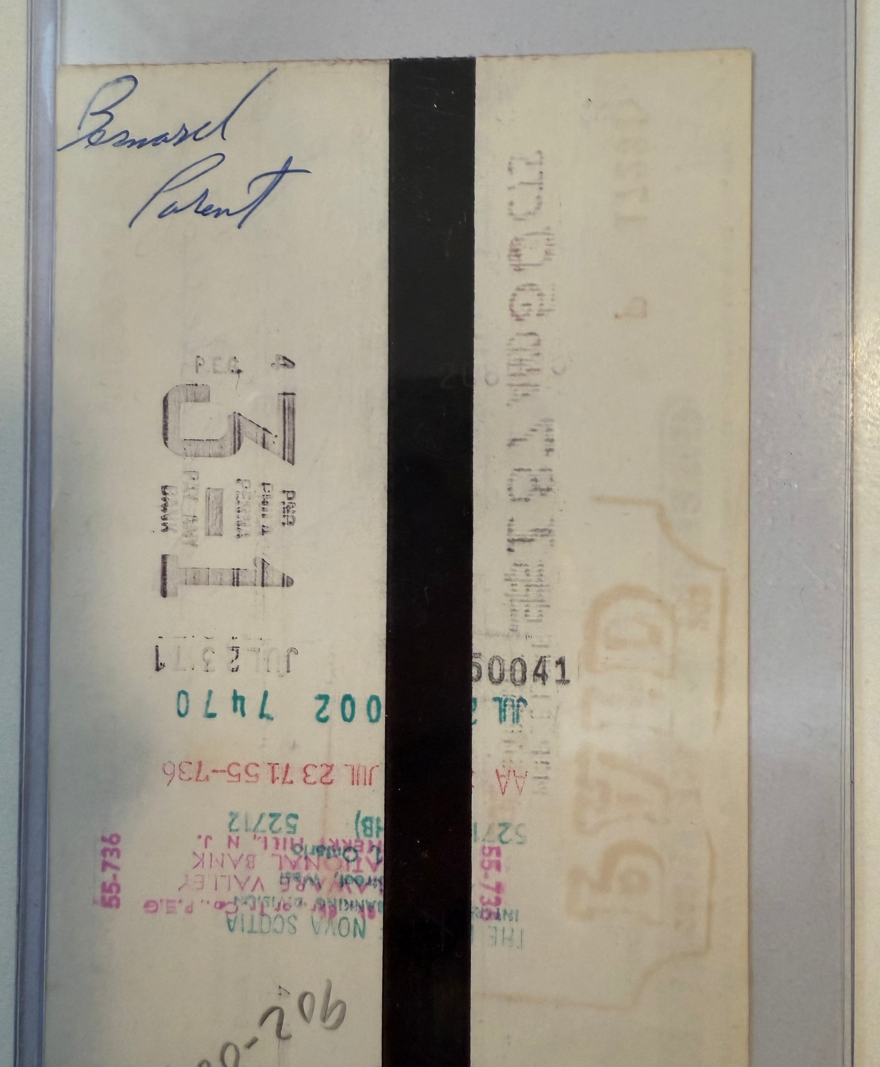 Bernie Parent Maple Leaf gardens rare autograph cheque 1971 with COA