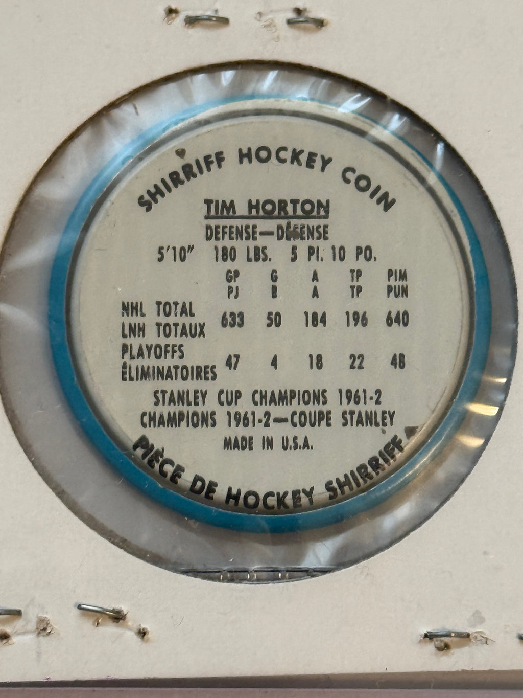 Nice investment high grade condition Tim Horton metal hockey coin 1962-63