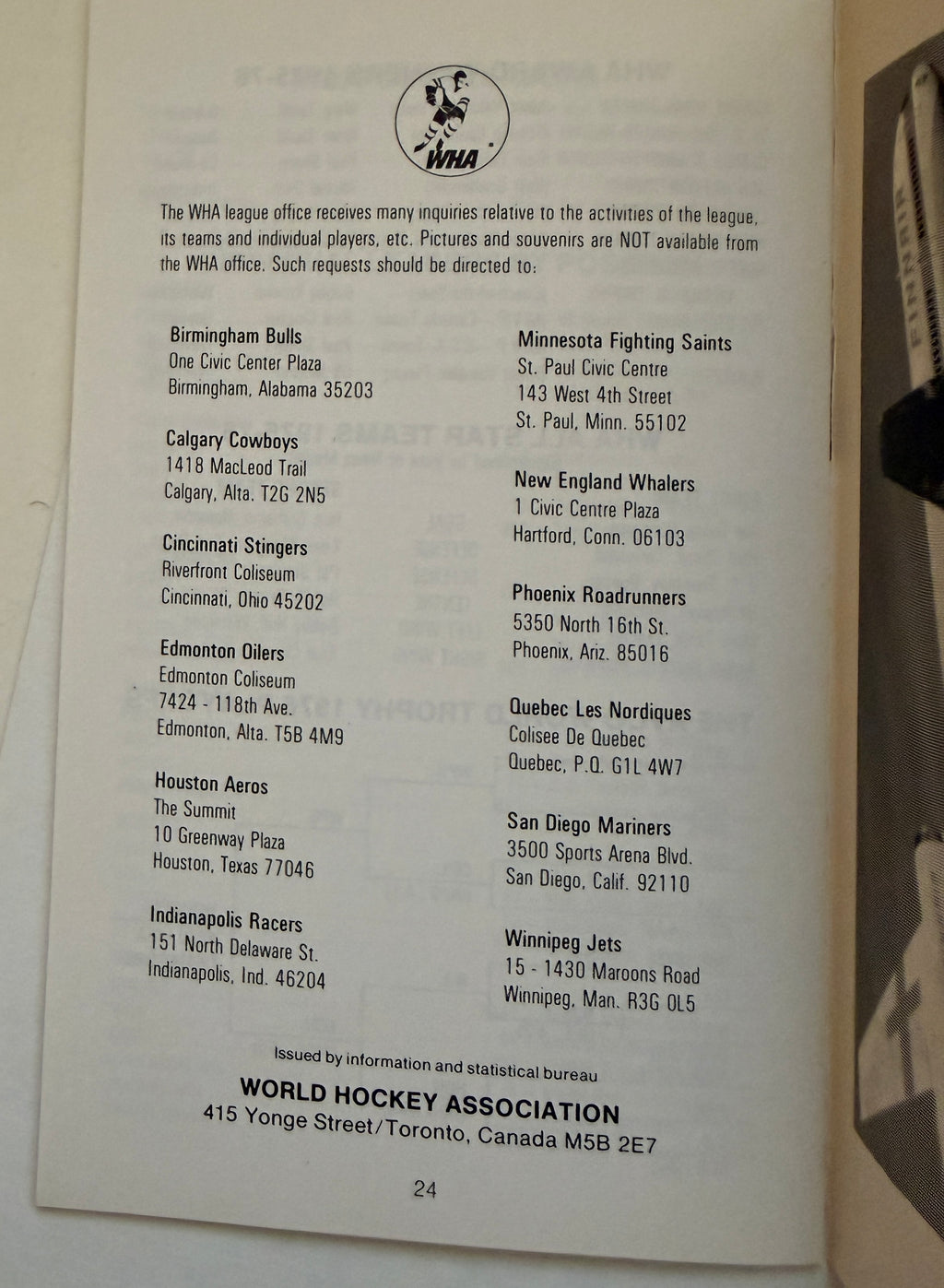 High grade condition rare WHA hockey Stats booklet all intact! 1976-77