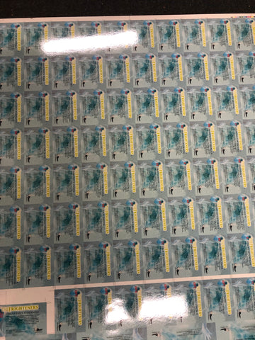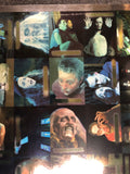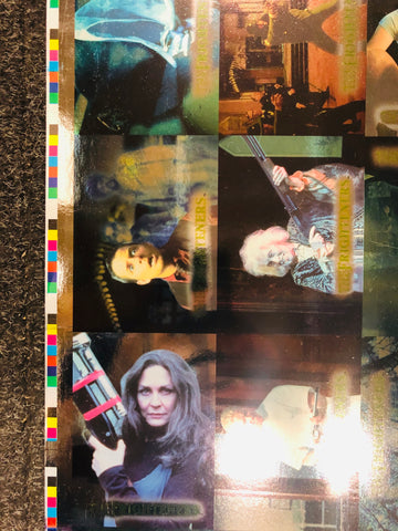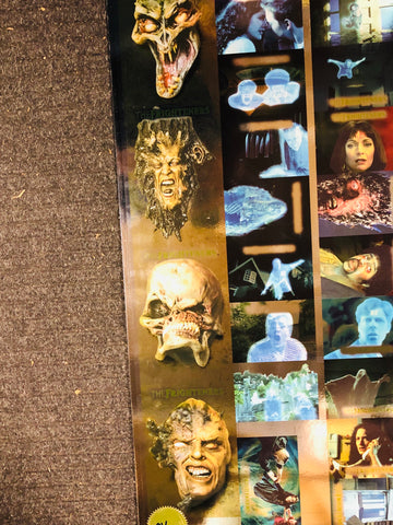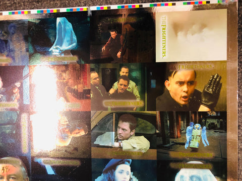 Great foil uncut card sheet from this cool Michael J Fox horror movie. 1990s rare card sheet numbered with insert sets. Amazing collectible and great to frame. Small crease on top. Final sale. Shipped rolled.