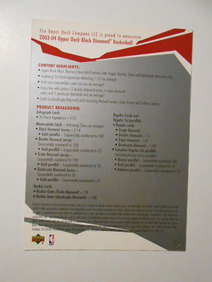 Back of the card advertises the Black Diamond NBA cards for 2003-04