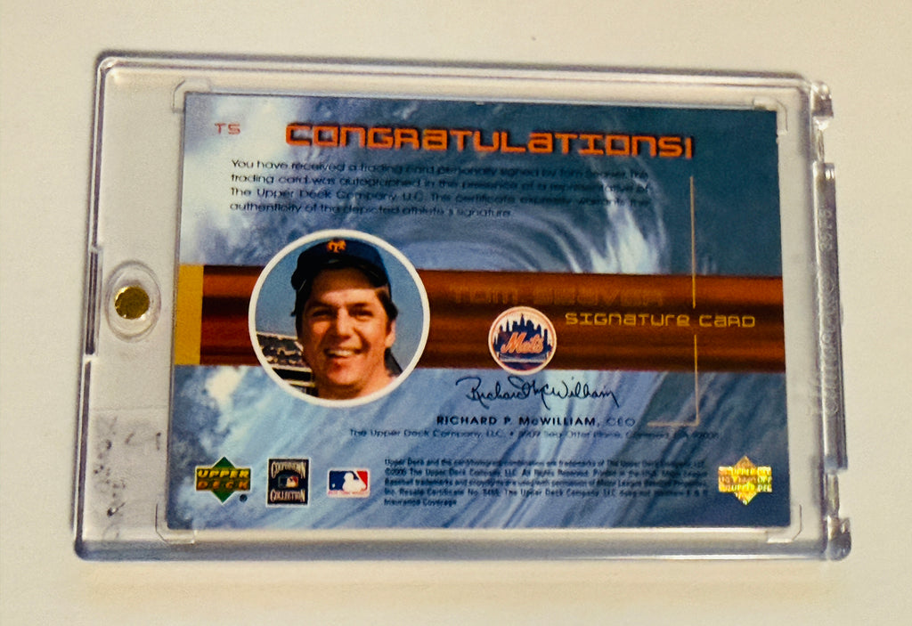 Great condition rare numbered Tom Seaver baseball legend autographed, Upper Deck insert Baseball card. Nice investment!!