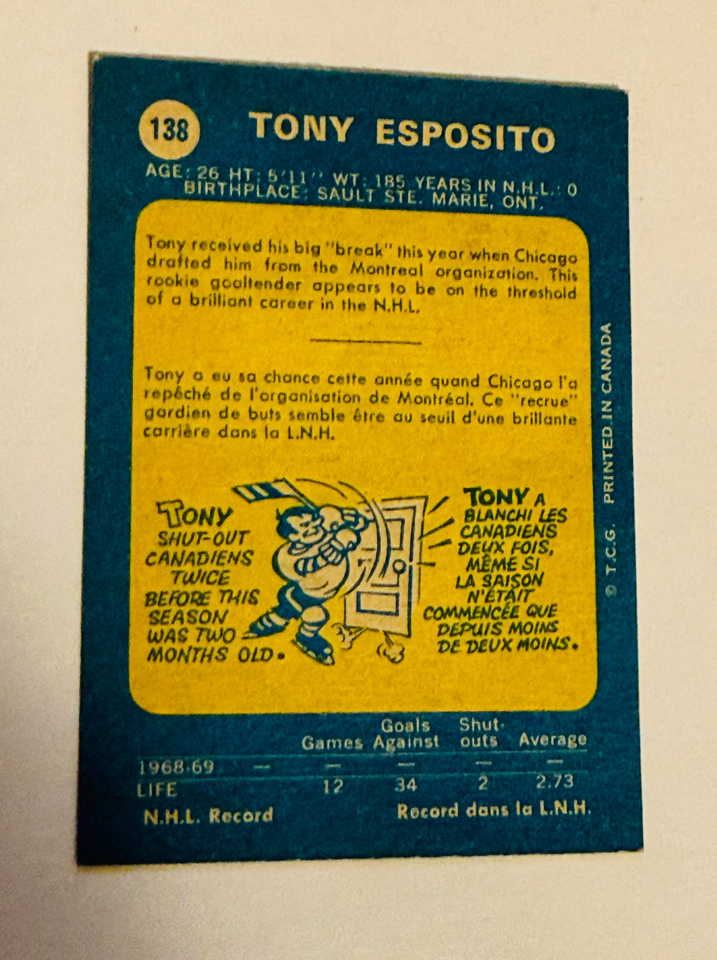 Nice investment key rookie hockey card of this NHL legend. OPC vintage rookie hockey card of Tony Esposito. EX – NM condition.
