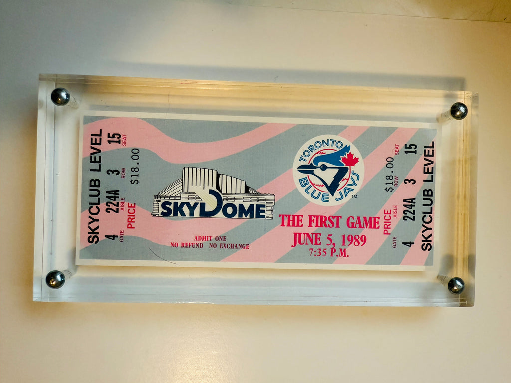 Great condition and only issued for ticket holders and it’s rare format first sky dome, Blue Jays game ticket and Lucite holder 1989